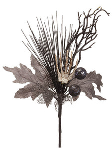15" Glittered Skeleton Hand/Long Needle Pine/Twig Pick Black Cream (pack of 12)