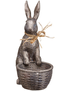 14.5" Garden Gnome With Rabbit Gray Whitewashed (pack of 2)
