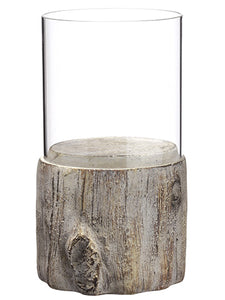 9"Hx5"D Glass Hurricane With Cement Pedestal Brown Clear (pack of 1)