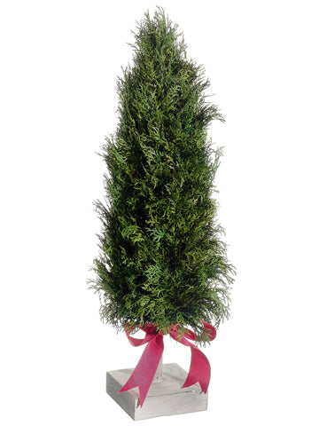 Preserved Cedar Teardrop Topiary w/Wood Base Green