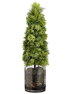26"Hx5"Wx5"L Cedar Cone Topiary in Glass Cylinder Vase Green (pack of 1)