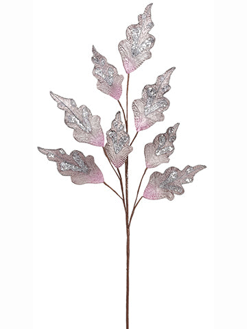 30" Glittered Sequin Velvet Leaf Spray (pack of 12)